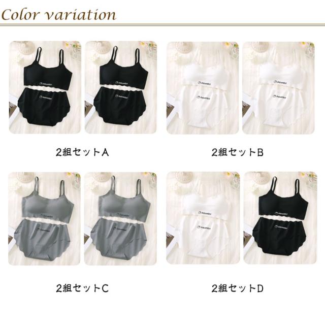 | 2組セット!中学生高学年?大人向け女の子用肌着セット。 スポーツブラとパンツの上下2点セットです。。 生地は吸汗速乾性素材を使用しているので、さらっとした肌あたりです 肩に負担がかかりにくいストラップは安定感のある幅広タイプ。 伸縮性のあるノンストレスな着心地。体にピッタリフィットして揺れないのでダンス衣装のインナーとしても大活躍! シンプルなデザインのハーフトップ、ジュニア向けインナー。 ? | |