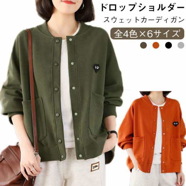 カーディガン フード付き スウェット アウター レディース ベースボールジャケット スタジアムジャケット ゆったり 羽織り 婦人服 長袖 春服 春物 30代 40代 送料無料