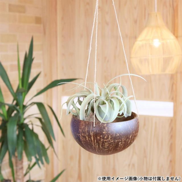 | ココナツの殻で作られたハンギングトレイ。小物入れにしたり、フェイクグリーンを入れて飾るのにオススメです。 |