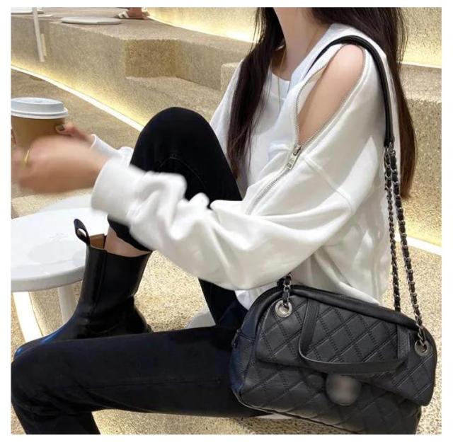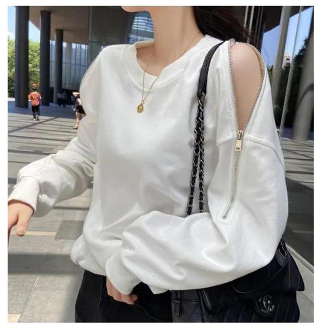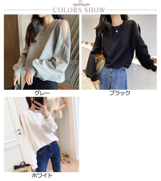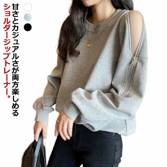 トレンド感たっぷり!袖ファスナー スウエット 送料無料 トレーナー レディース パーカー プルオーバーパーカー 肩出し 肩だし 個性的 セクシー トップス 春 春服 肩露出 ラウンドネック 秋 秋服 トレンド 女性