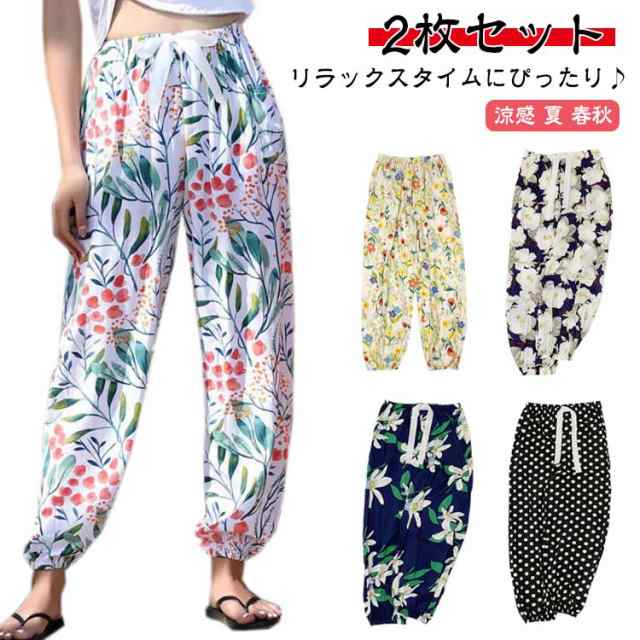 2枚セット 送料無料 ステテコ とろみ リラックスパンツ ボトムス 9分丈 七分丈 ジョガーパンツ ステテコ 冷感 涼感 夏 春秋 ワイドパンツ 部屋着 総柄 花柄 春 秋 春秋 夏 ルームウェア