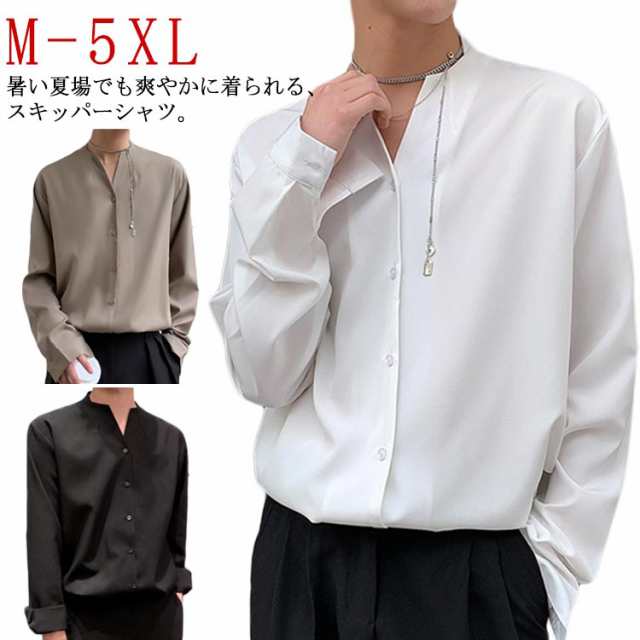 シャツ スタンドカラー 襟なしシャツ スキッパー ノーカラー カジュアルシャツ 長袖 メンズ 夏 シャツ 薄手 おしゃれ Vネック 長袖シャツ 前開き シャツ トップス ゆったり 大きいサイズ 春夏秋 春服 夏服 秋服 ビジネス カジュアル