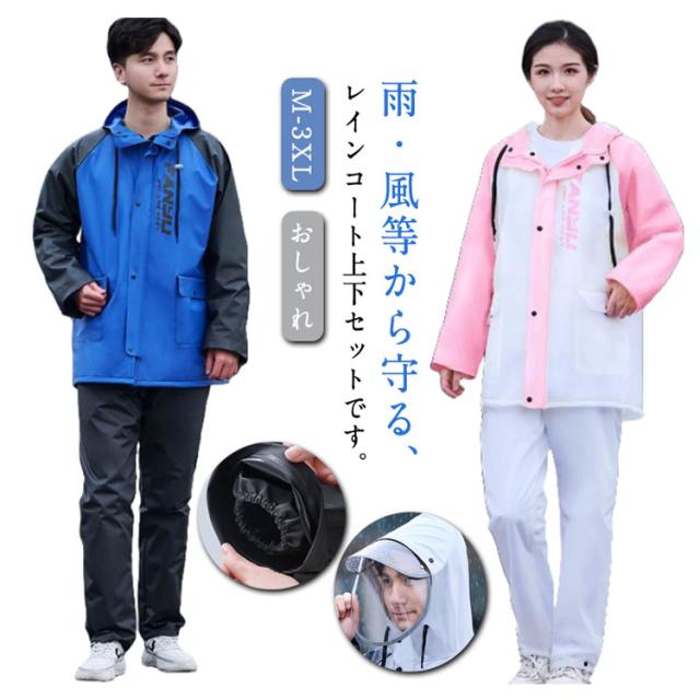 雨具 完全防水 セパレート レディース メンズ 自転車 レインコート ポケット付き パンツ レインウェア 上下セット ダブルツバ+スナップボタン+ファスナーの二重防水!レインスーツ レインジャケット 豪雨対策 梅雨対策 男女兼用 取り外しフェイスカバー付き