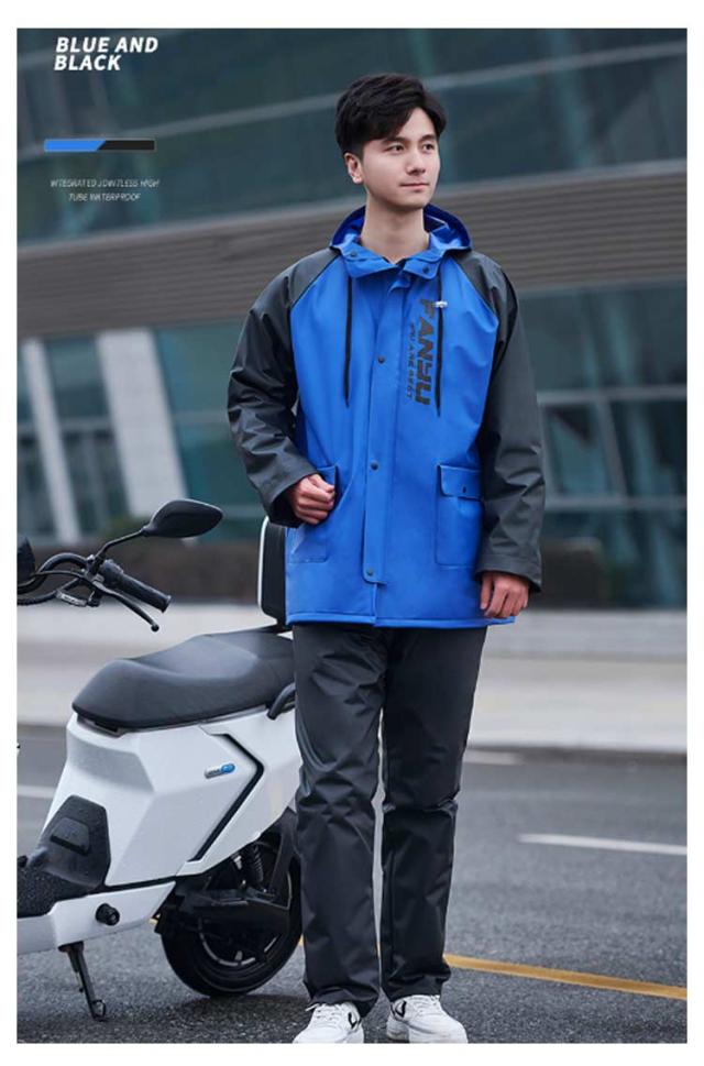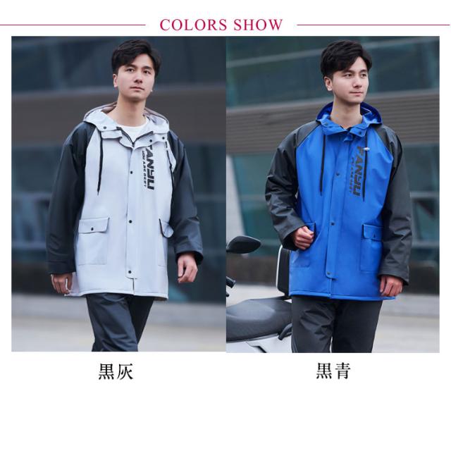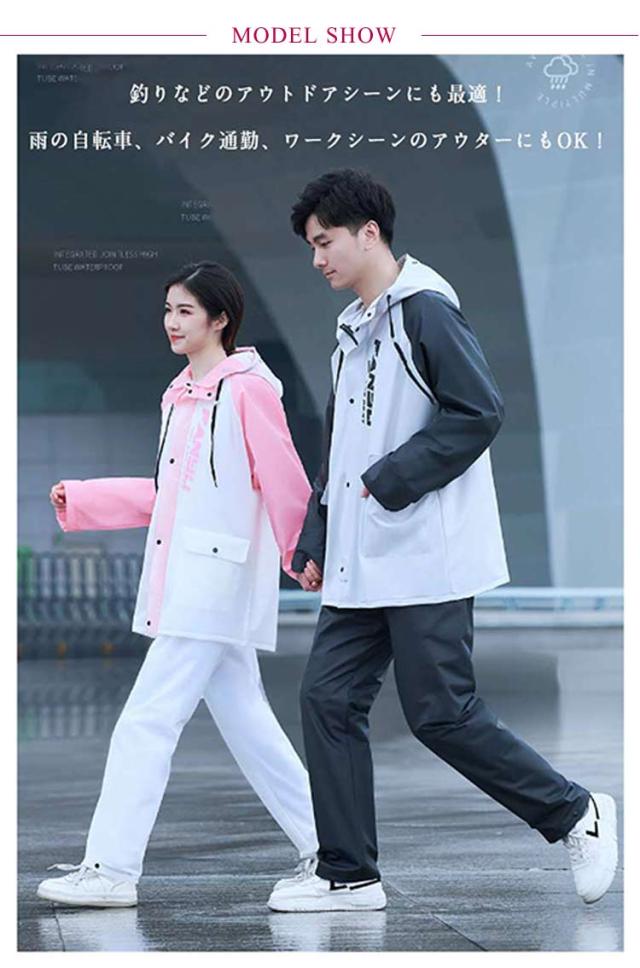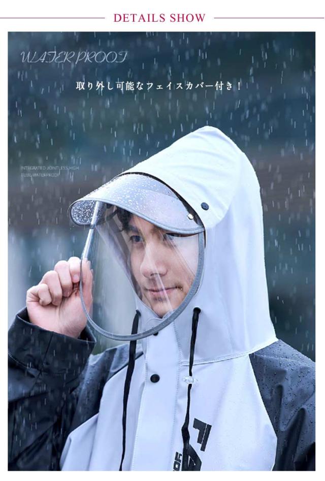 | 雨・風等から守る、レインコート上下セットです。 取り外し可能なフェイスカバー付き! 雨の侵入を防ぐスナップ+ファスナーデザイン! 雨の日をフルサポート!自由に着こなせ!カジュアルレインスーツ。 釣りなどのアウトドアシーンにも最適! 雨の自転車、バイク通勤、ワークシーンのアウターにもOK! | |