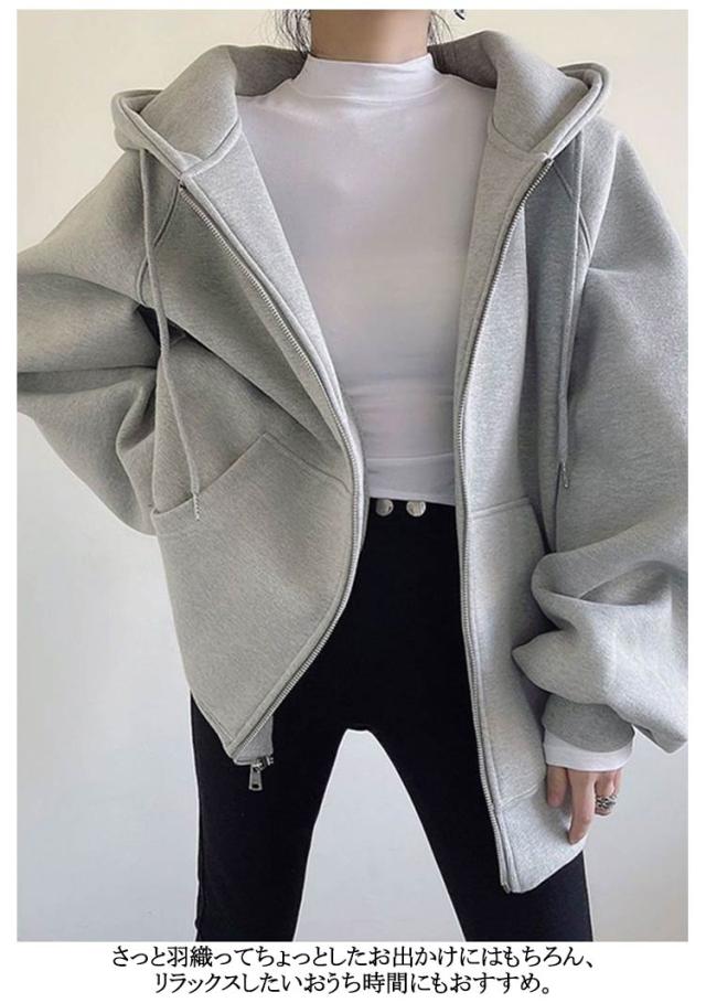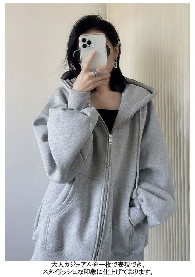 ジップアップ ライトアウター パーカー パーカー レディース 秋 ジップアップパーカー パーカー 長袖 パーカー スウェット フード付き おしゃれ 春 ゆったり アウター 韓国ファッション 薄手 可愛い きれいめ 無地 送料無料 グレー