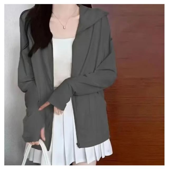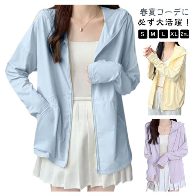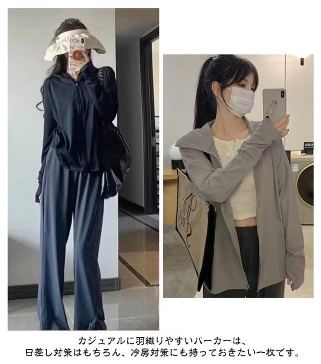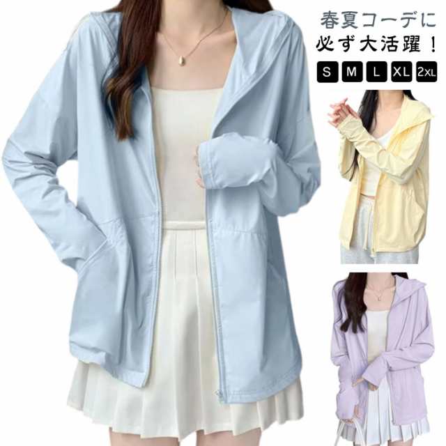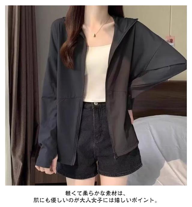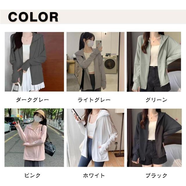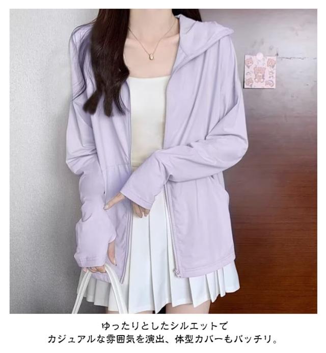 体型カバー パーカー UVパーカー UVカット 長袖 指穴付き ラッシュガード フード付き 薄手 カーディガン ラッシュパーカー 日焼け防止 ジップアップ 夏用 無地 紫外線対策 おしゃれ きれいめ ゆったり 接触冷感 アウター 大人 可愛い 涼しい UVケア 冷房対策 通勤