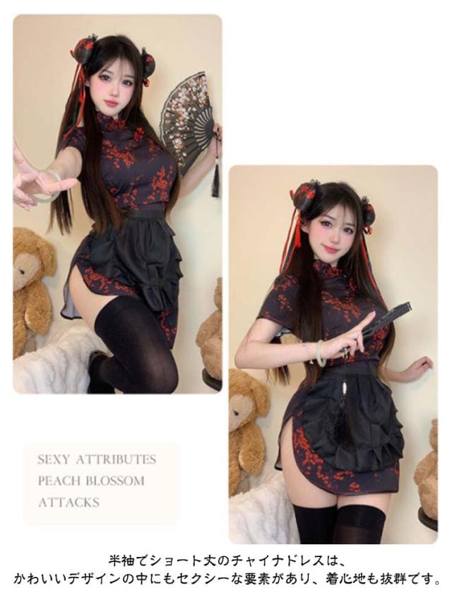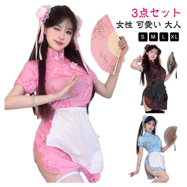 チチャイナドレス ャイナ服 セクシー ャイナ服 3点セット コスプレ 仮装 中国 可愛い 大きいサイズ チャイナ ドレス レディース コスプレ衣装 大人 ミニ丈 ロリータ服 中華 ワンピース 衣装 コスチューム 女性 パーティ イベント