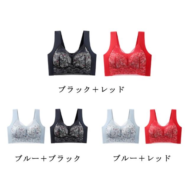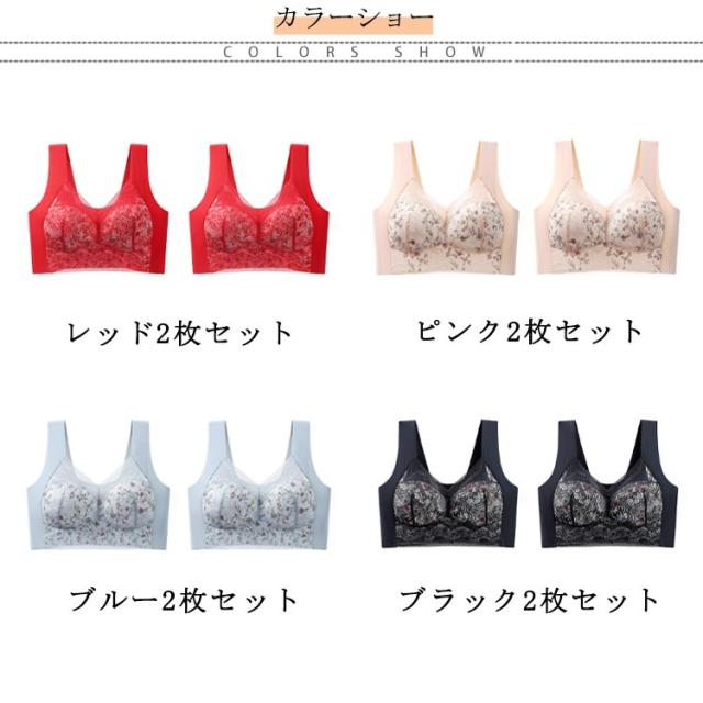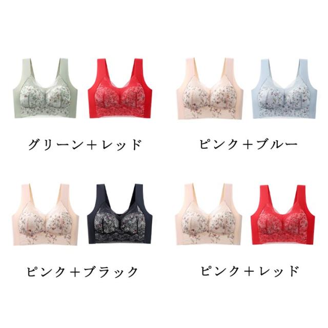 胸を小さく見せるブラ 2枚セット 着痩せブラ 胸が小さく見えるブラ フルカップ 大きな胸を小さく見せるブラ 花柄 レース ノーワイヤーブラジャー 脇高 設計 脇肉 背中 スッキリ 補正 補正下着 インナー 和装ブラ 浴衣ブラ さらしブラ