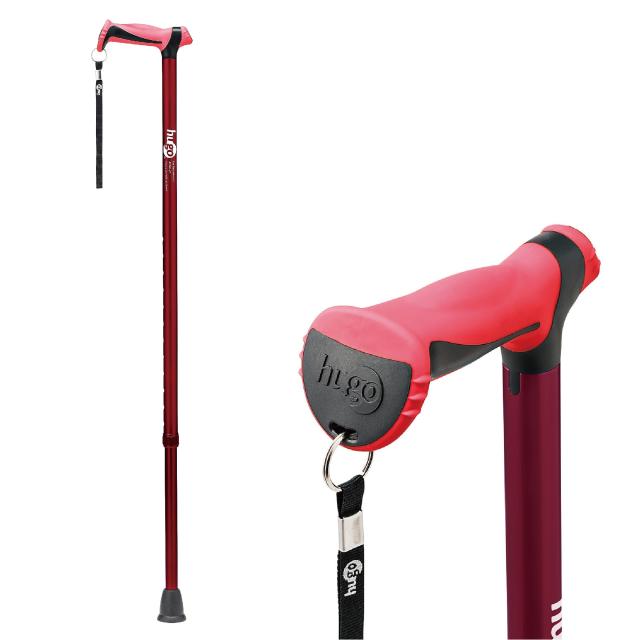グリップは左右どちらでも握りやすい形状、クッション付きで衝撃を緩和する1本杖です。