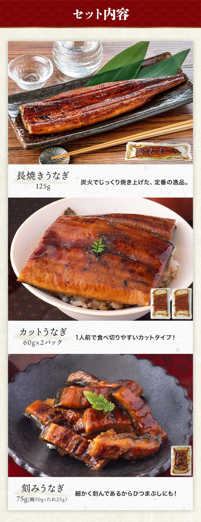 うなぎ 3種セット ギフトBOX入 長焼き 刻み カット 食べ比べ 合計320g 鰻 ウナギ 国産 無投薬 ギフト 化粧箱