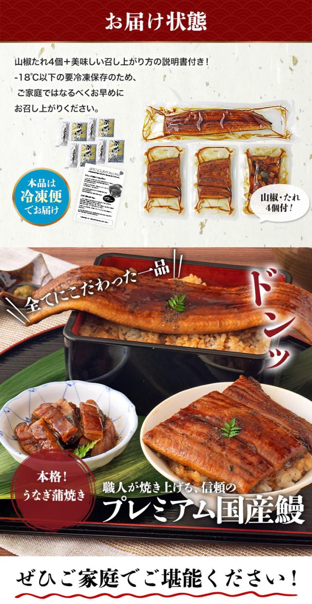 うなぎ(鹿児島県)、しょうゆ(大豆・小麦を含む)、砂糖、みりん、水あめ、発酵調味料