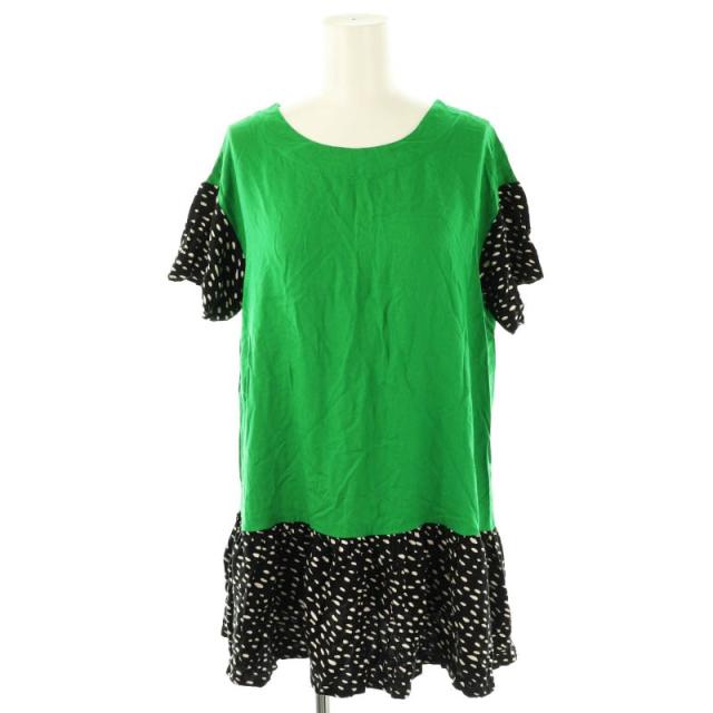 【中古】マリメッコ marimekko チュニック カットソー 半袖 柄 切替 34 緑 黒 /NR ■OS レディース