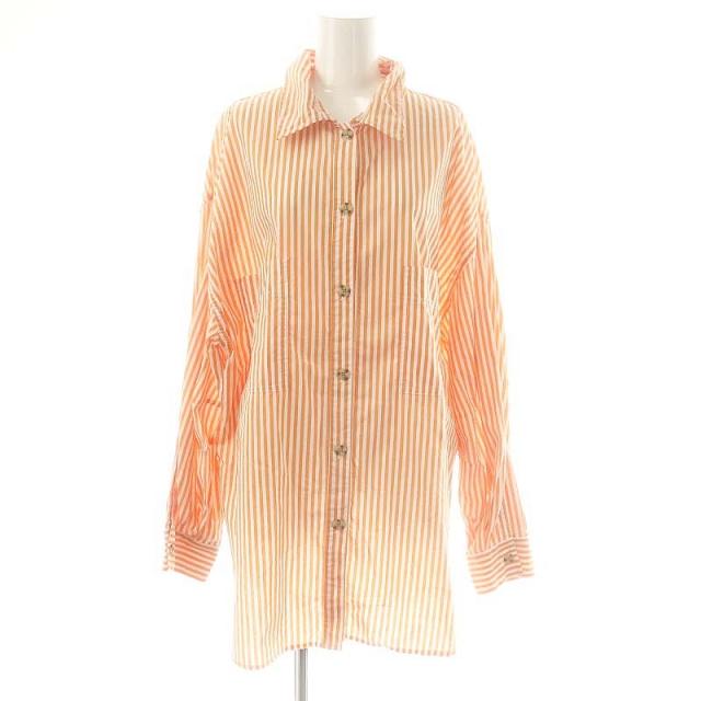 【中古】アングリッド UNGRID ストライプルーズシャツ ブラウス 長袖 前開き F オレンジ 白 /NR ■OS レディース