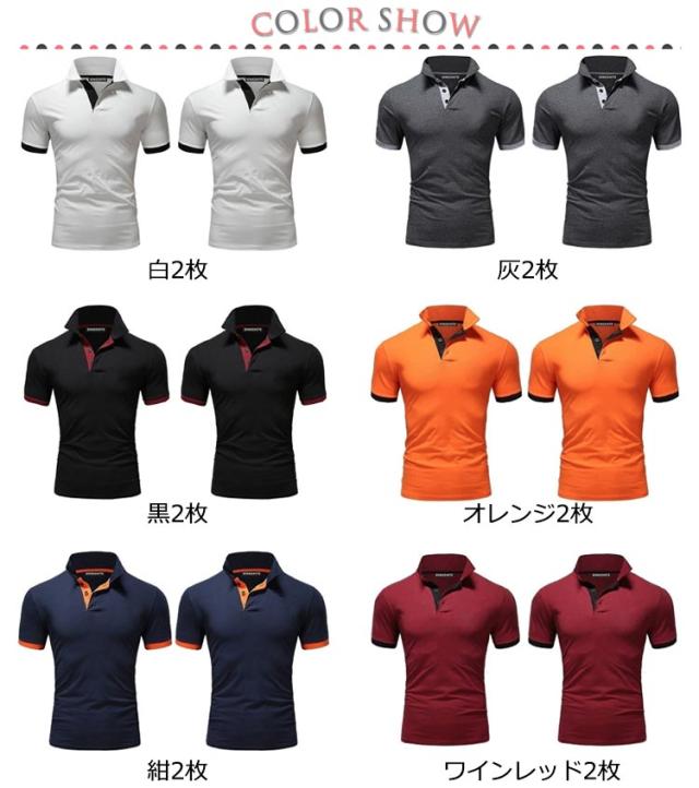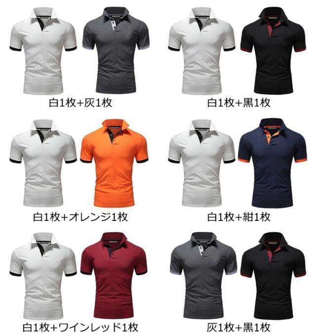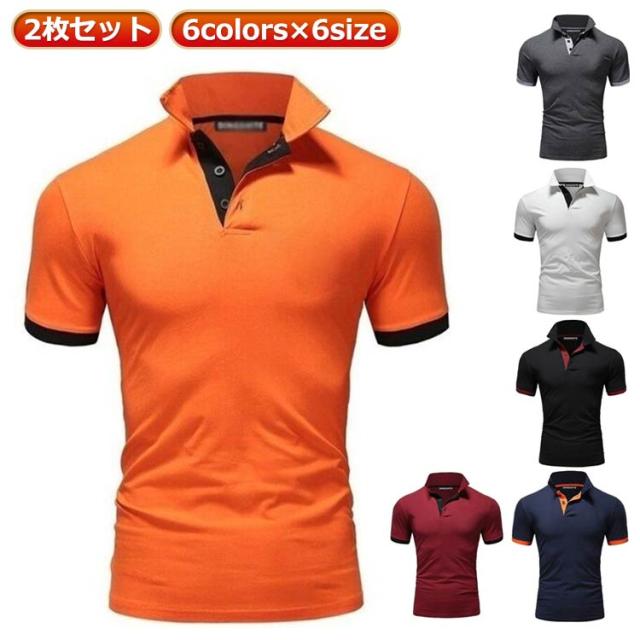 ファッション 2枚セット トップス 大きいサイズ ポロシャツ 半袖 2枚セット ゴルフウェア 無地 トレンド 運動 おしゃれ スポーツ メンズ