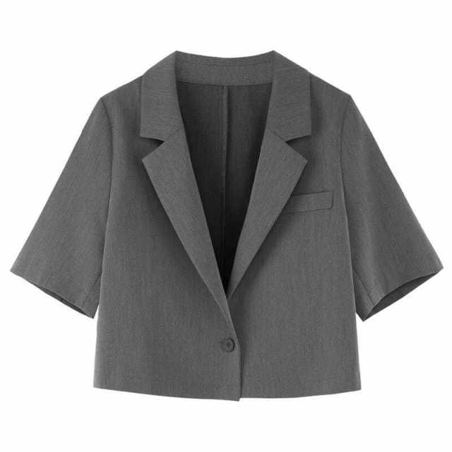 テーラードジャケット サマージャケット シングルブレスト 半袖 ショート丈 レディース 薄手 無地 春 夏 秋 カジュアル 韓国風 着回し