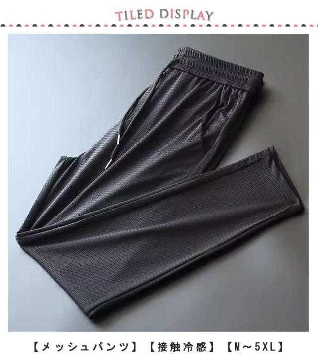 スポーツ アイスシルクパンツ ストレッチ 速乾 涼しい メンズ ロングパンツ メッシュ 夏物 薄手 ゴルフパンツ ジョガーパンツ 伸縮性 美脚 長ズボン 通気 大きいサイズ ひんやり カジュアル 冷感パンツ 接触冷感