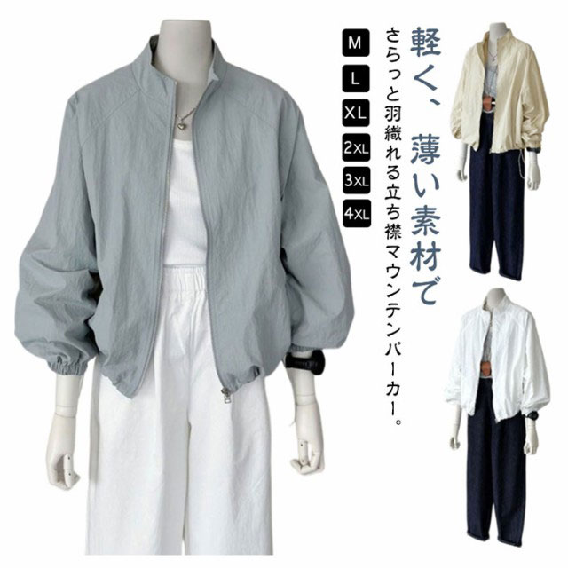 マウンテンパーカー レディース アウトドア 春 UVカット 防風 アウター カジュアル パーカー ジャンパー 薄手 ライトアウター ブルゾン 長袖 ジャケット ウィンドブレーカー 立ち襟 ジャンバー 冷房対策 軽量 紫外線対策 カジュアル ショート丈 スポーツ 夏