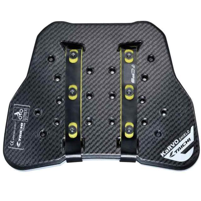 水よりも比重の軽いポリプロピレン樹脂を、特殊成形技術によって成型したハニカムコア材『TECCELL(テクセル)』を採用。3層式厚さ19mm、重量約270gを実現し、 表層に粘弾性素材KaRVOシールドを備えた構造により、prEN1621-3 level2(フルチェストCタイプ)を、アジアのメーカーでは初めてクリア。 また、フルチェストタイプのプロテクターにおいて、世界最高の剛性を実現しました。