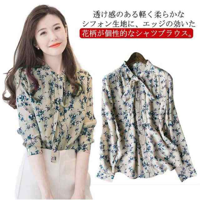 ボウタイブラウス 花柄ブラウス ブラウス 送料無料 花柄 シャツ レディース トップス チュニック シフォン プルオーバー 長袖 長袖シャツ リボン 花柄 女性 薄手 とろみ 柔らか 透けない ゆったり 大人 可愛い ふんわり オフィス 春物 春 夏