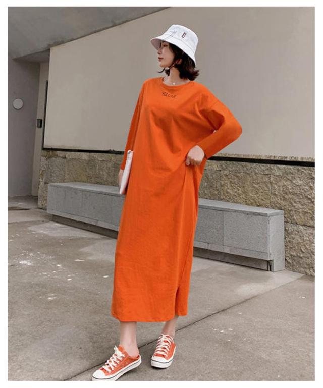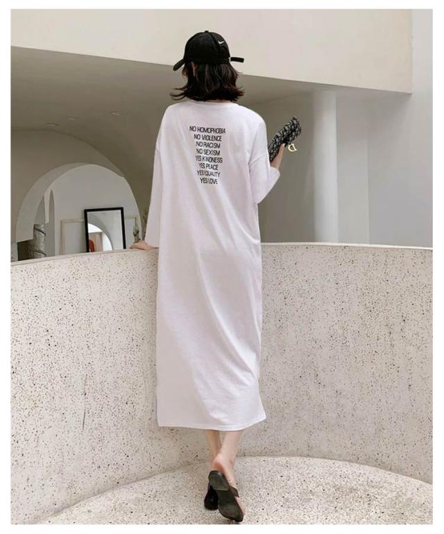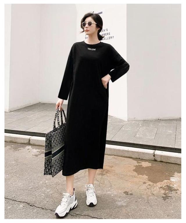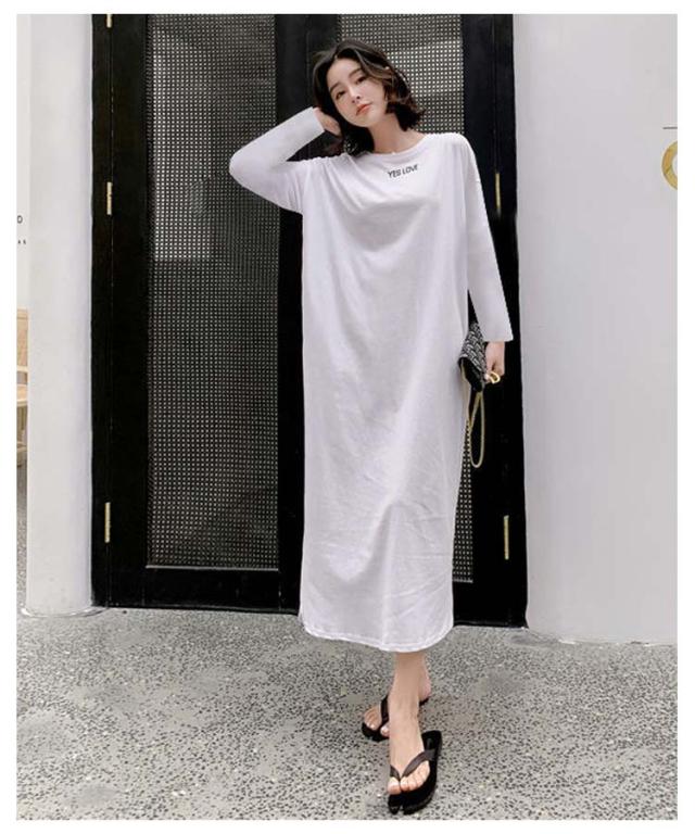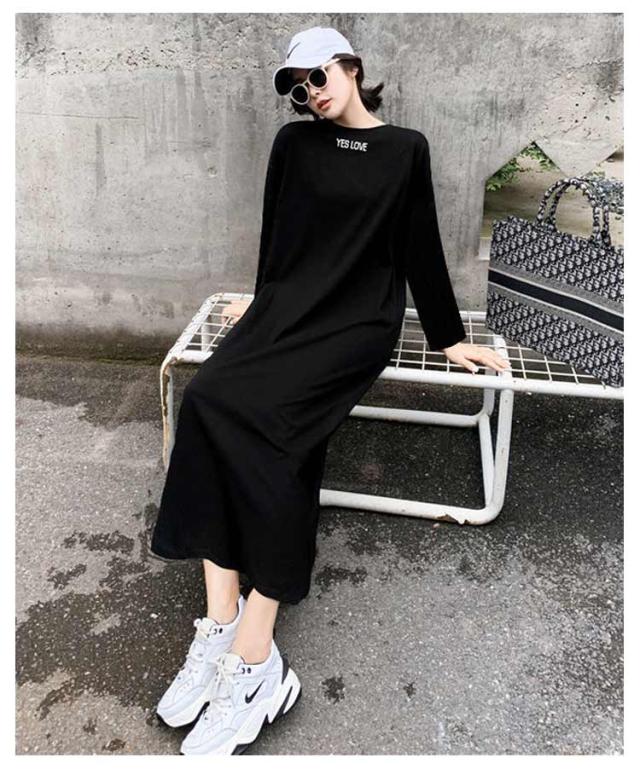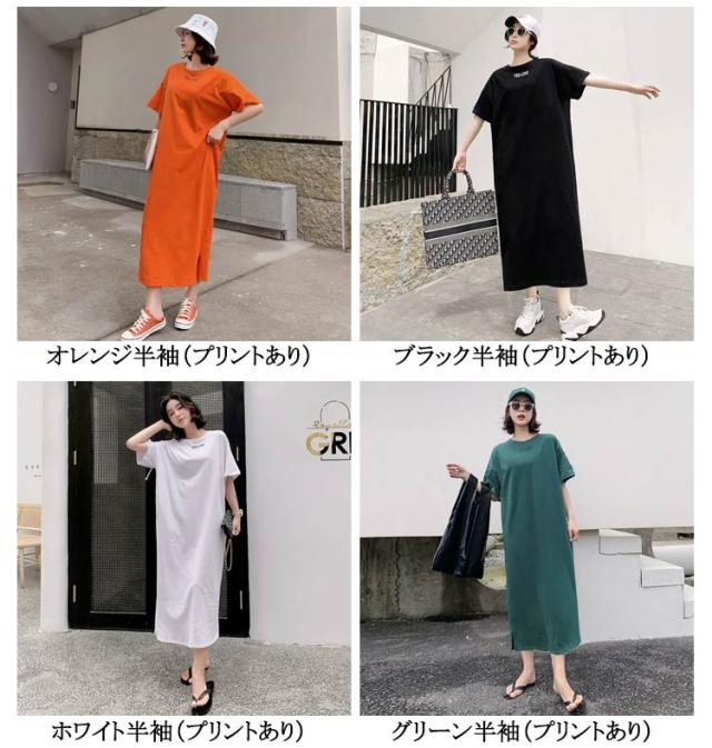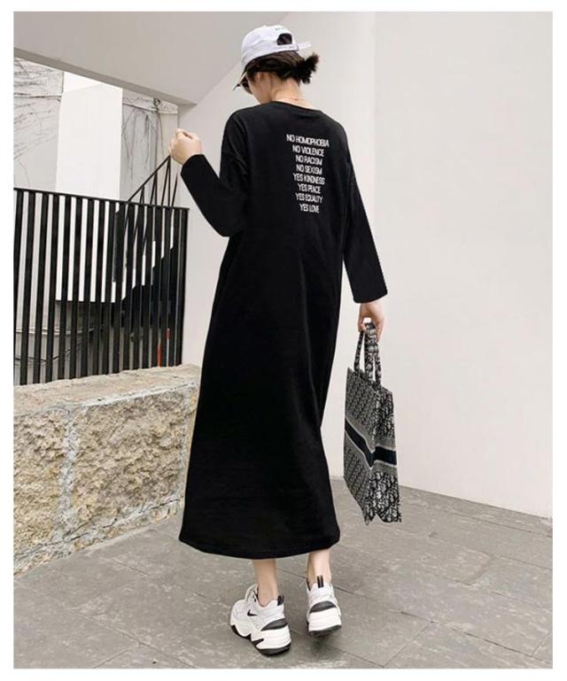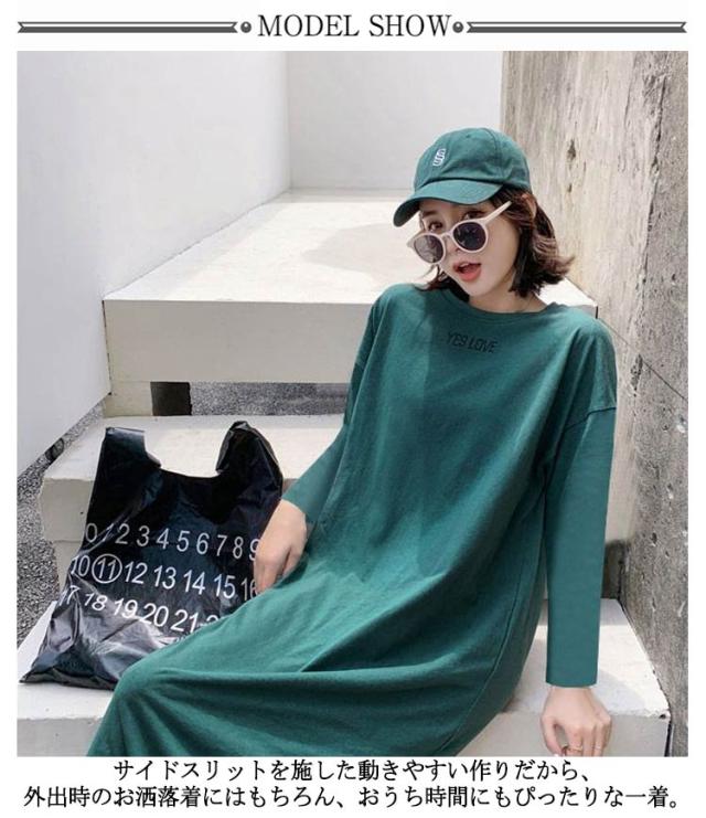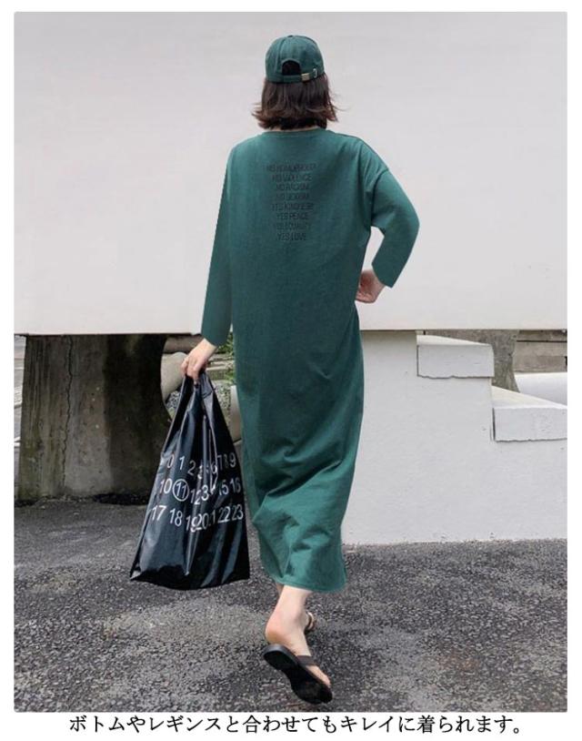 体型カバー レディース オーバーサイズ ルームウェア ロングワンピース ゆったり tシャツ 部屋着 オーバーサイズ ロング丈 ワンピース 大きいサイズ 夏 秋 ワンピース 長袖 大人可愛い カジュアル ロゴ 春 おしゃれ マキシ