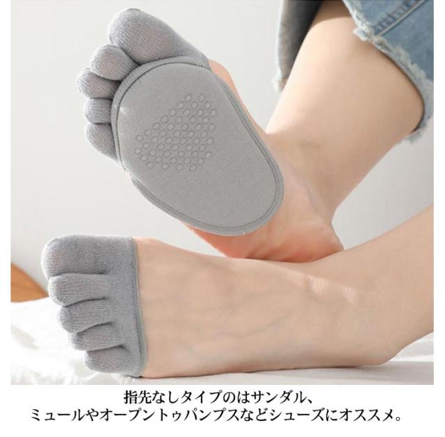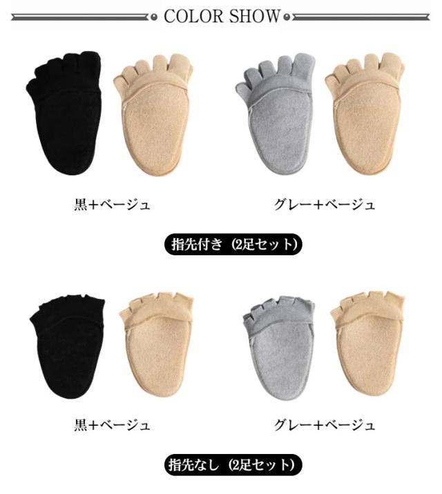 インナーソックス 5本指 パッド付き 2足セット つま先ソックス 足裏保護パット つま先靴下 つま先カバー 指先なし 指先付き パンプス サンダル ミュール 用 ソックス 浅履き 蒸れない 脱げない 吸汗性 衝撃吸収 滑り止め 歩きやすい インソール