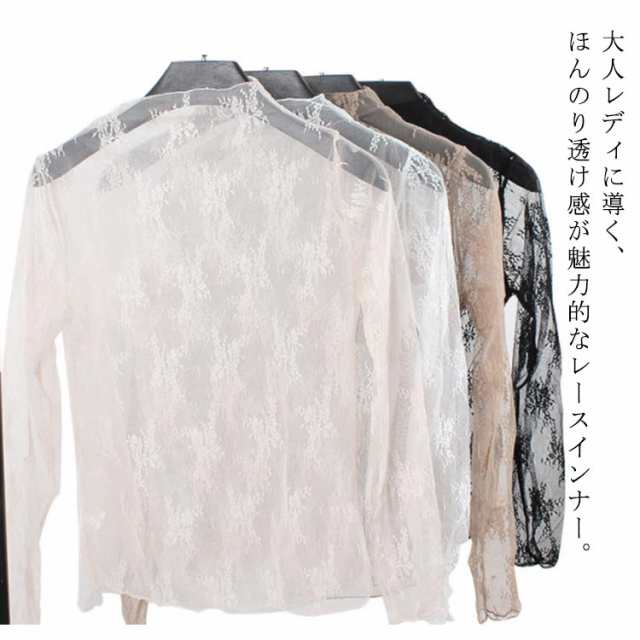シースルー トップス ハイネック ブラウス 透け 透け感 肌見せ インナー レース シースルー シースルーブラウス 長袖 セクシー 大人 シアー 黒 ブラック 白 ホワイト 大きいサイズ 春 夏 秋