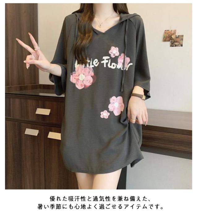 ロング丈 おしゃれ レディース 大きいサイズ 体型カバー ゆったり tシャツ Tシャツ 夏 フード付き Tシャツ ロングtシャツ チュニック カジュアル カットソー トップス ロンt プルオーバー パーカー 無地 シンプル 半袖パーカー