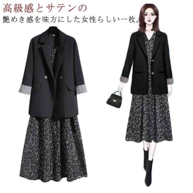 2点セット スーツ レディース ワンピース ジャケット セットアップ 入園式 入学式 卒業式 スーツ セレモニースーツ ママ 母 黒 ブラック スーツ フォーマルスーツ 体型カバー 上品 きれいめ お呼ばれ