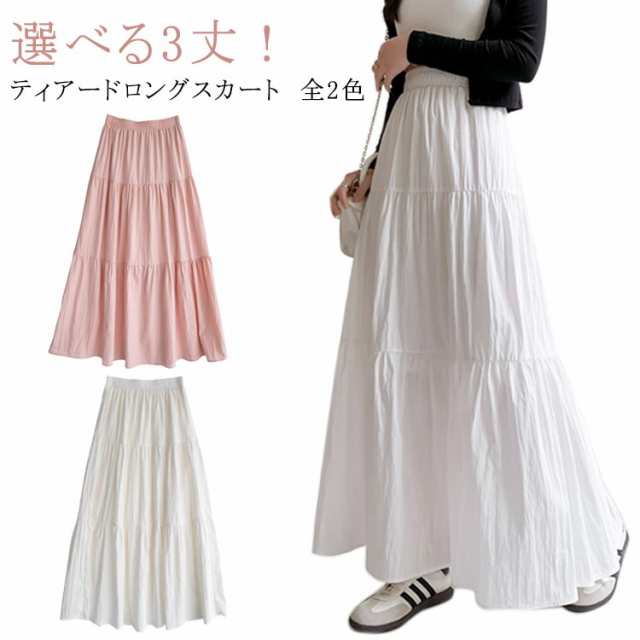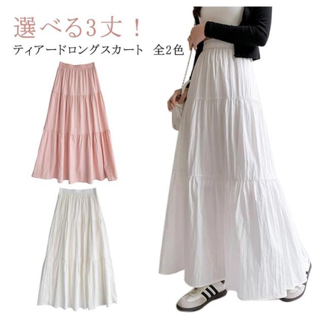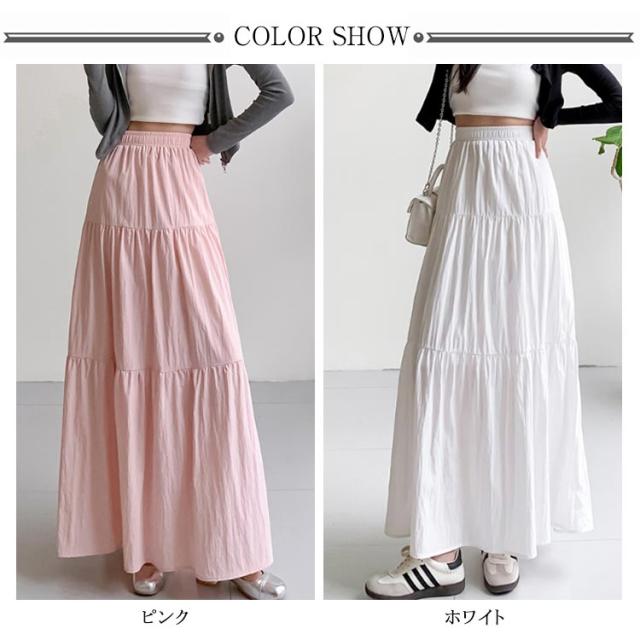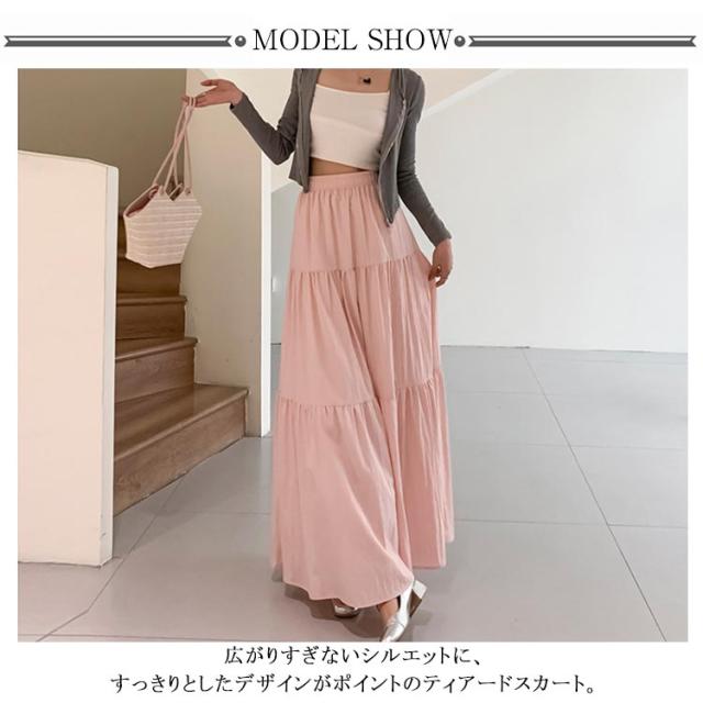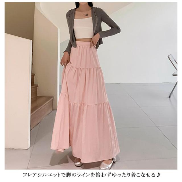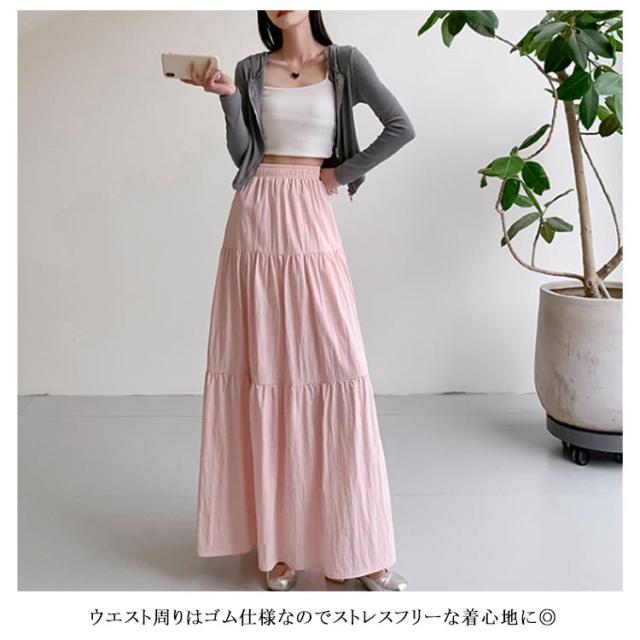 ロングスカート ロング丈 ティアードスカート 大人可愛い フレアスカート マキシスカート 春夏 マキシ丈 レディース おしゃれ ふんわり 薄手 裏地あり 無地 ゆったり ウエストゴム Aライン きれいめ