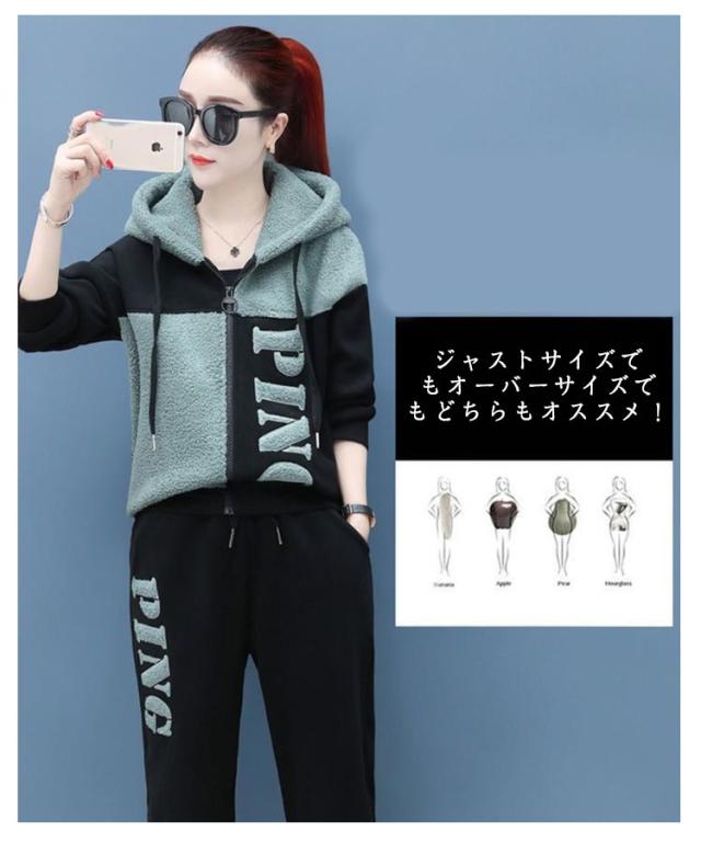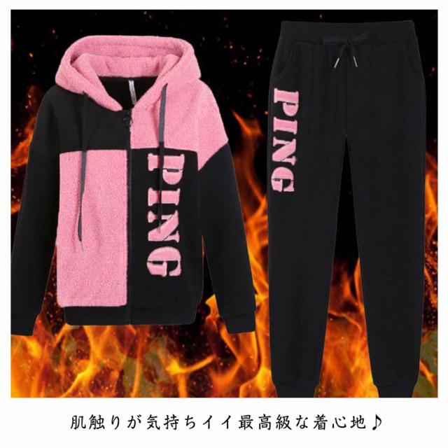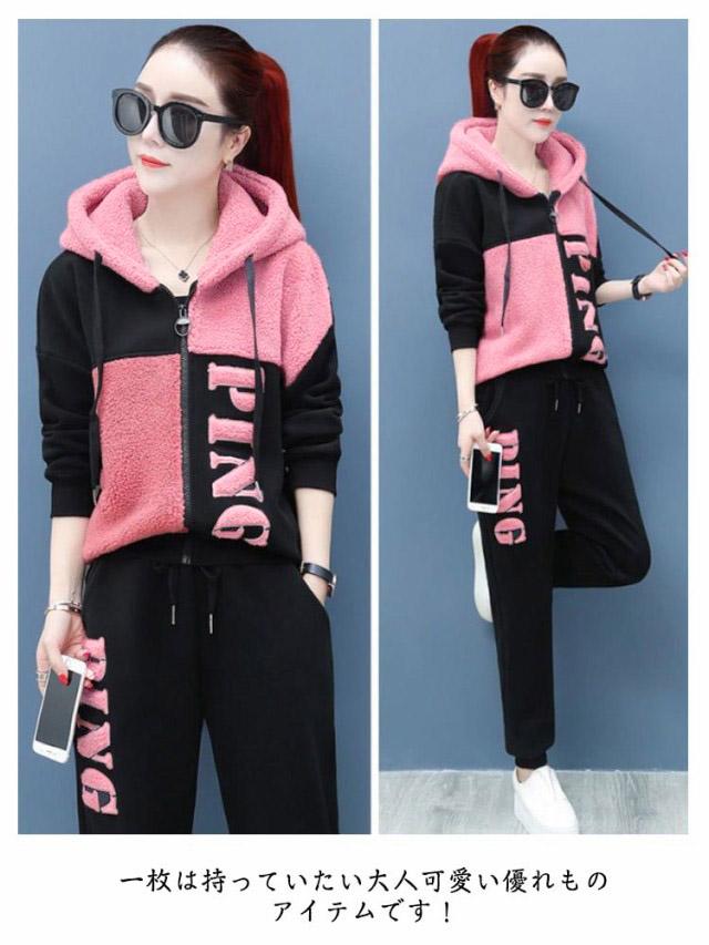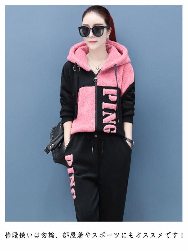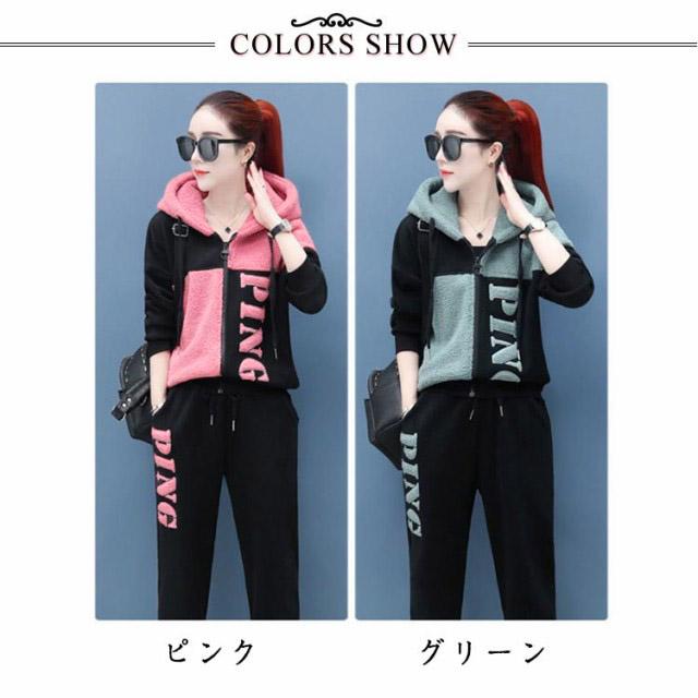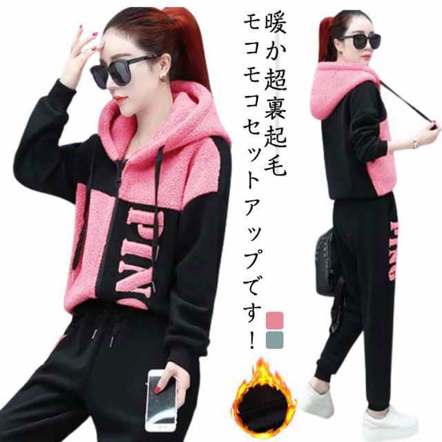 上下セット 可愛い もこもこ ジャージ スウェット パンツ スポーツウェア お洒落 トップス ボトムス トレーナー スエット セットアップ レディース 送料無料 防寒 運動着 部屋着 ジップパーカー ボアパンツ 冬着 ピンク グリーン