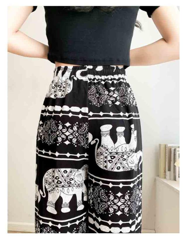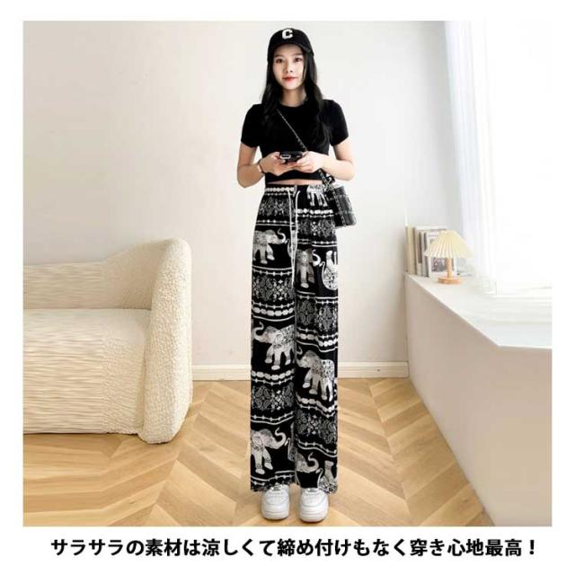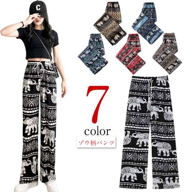 タイパンツ 軽い ゾウ柄 レディース アジアン ルームウェア 春 夏 ぞう パンツ 部屋着 象 ロングパンツ エスニック ストレート ワイドパンツ ヨガやダンスにも ヴィンテージ タイパンツ 薄手 体型カバー イージーパンツ