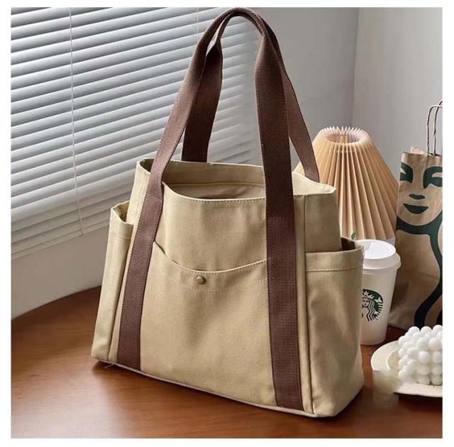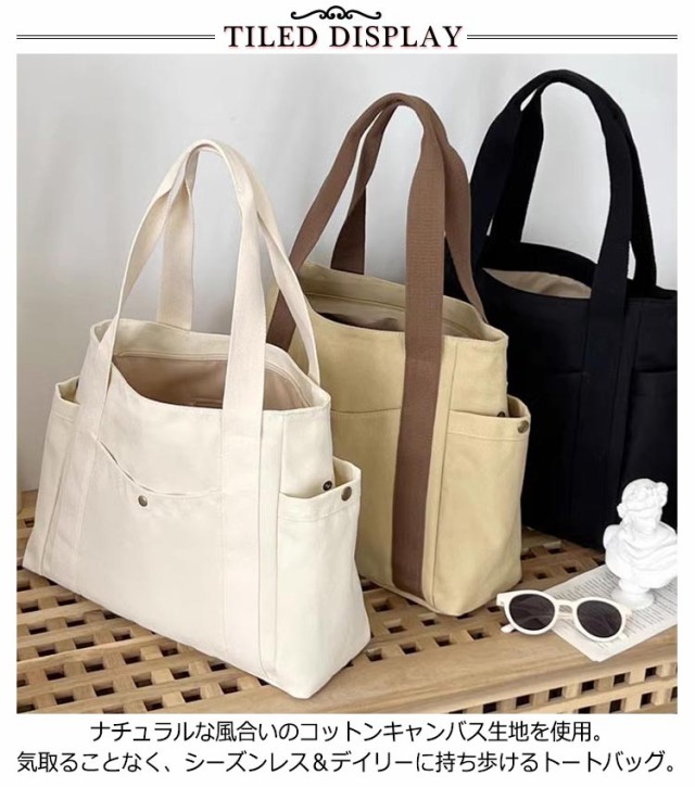 送料無料 トートバッグ キャンバス 肩掛け 無地 マザーズバッグ トート バッグ キャンバストートバッグ キャンバスバッグ 仕切り付き 持ち手 長め レディース メンズ 大きめ 布 A4 横 整理整頓 マチあり 通勤 通学