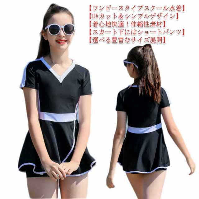 送料無料 スクール水着 女の子 キッズ 水着 ワンピース 子供 ジュニア 140cm 150cm 160cm 170cm 一体型 無地 UPF50+ 裏地付き 透けない ネームタグ付き こども スイムウェア 女児 幼稚園 小学生 中学生 かわいい チュニック 紫外線カット率99.9%以上