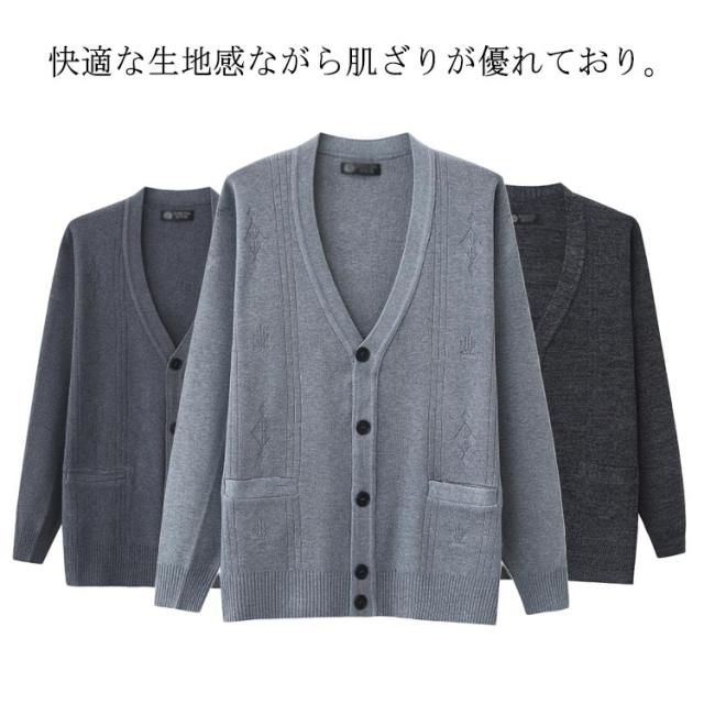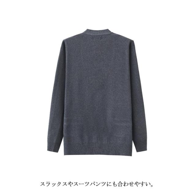 | 快適な生地感ながら肌ざりが優れており。 これなら寒い季節でもスコアアップが望めますよ! カーディガンは普段使いはもちろん、ビジネスシーンでも活躍するデザイン。 中にTシャツやシャツを着て、男性的な魅力をアピールできます。 スラックスやスーツパンツにも合わせやすい。 | |