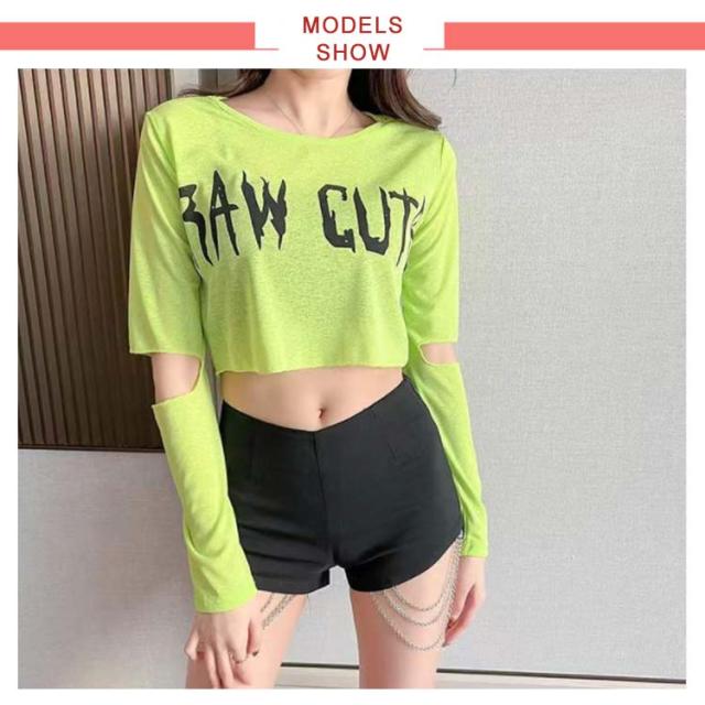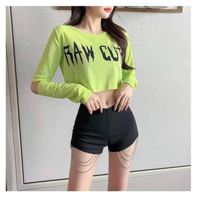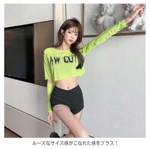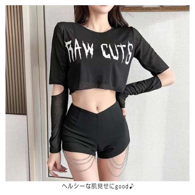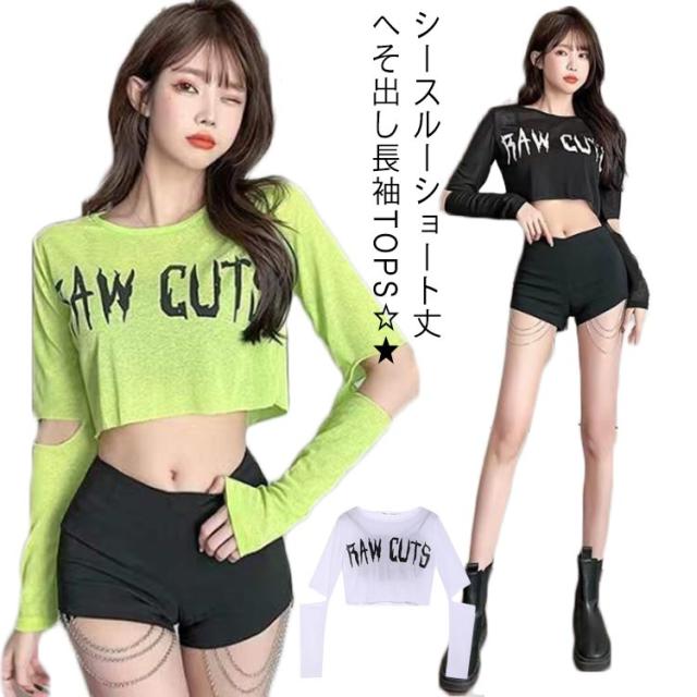 Tシャツ 長袖 ダンス衣装 トップス シースルー セットアップ 2点 キャミソール メッシュ セクシー カットソー へそ出し 重ね着 透け 肌透け ダンス インスタ映え ヒップホップ ストリート 社交ダンス