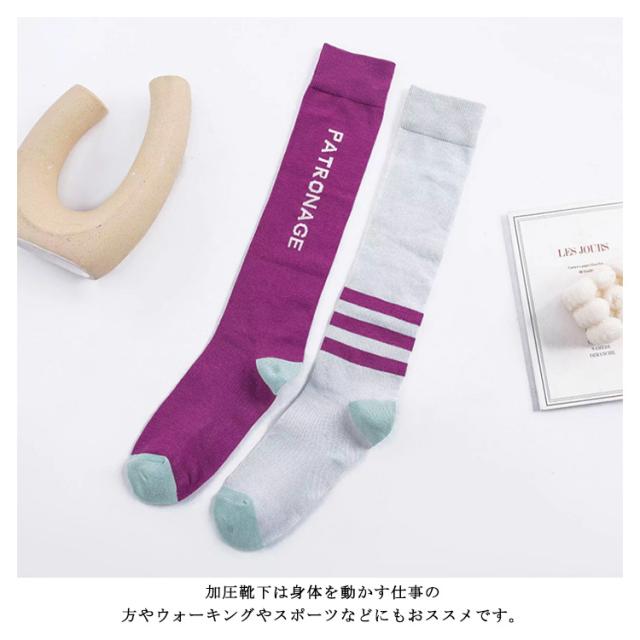 送料無料 スポーツソックス 着圧 ソックス 靴下 くつ下 レディース ハイソックス スポーツソックス ランニングソックス ストッキング 滑り止め 抗菌 運動 ジョギング ヨガ ウォーキング ランニング 配色 おしゃれ ギフト プレゼント