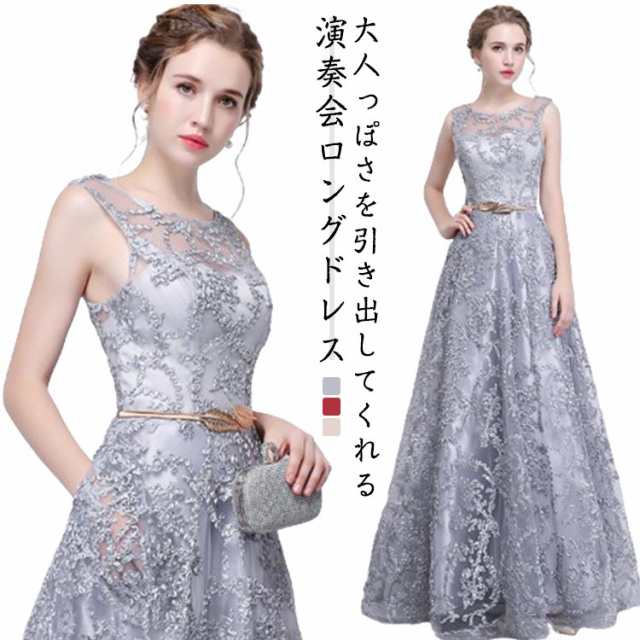 ドレス パーティードレス 結婚式 ウェディングドレス レース チュール ノースリーブ 袖なし Aライン フィット フレア ロング丈 演奏会 披露宴 二次会 お呼ばれ ピアノ 発表会 イブニングドレス