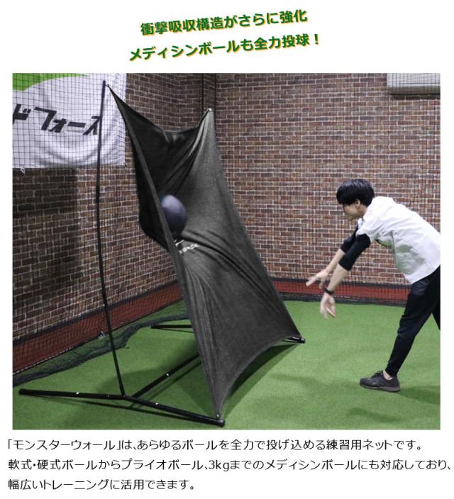 フィールドフォース モンスターウォール メディシンボール3kgまで対応 練習用ネット 防球ネット ブラック