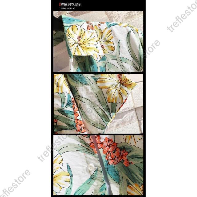のボタニカル柄、花柄、和柄プリントデザインとともに、アロハの特徴でもあるオープンカラーは今季注目トレンドの一つ。