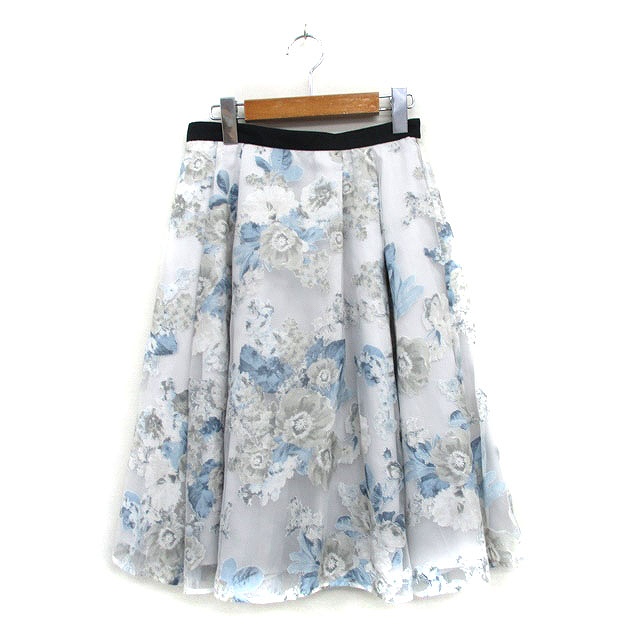【中古】ジャスグリッティー JUSGLITTY フレア スカート チュール コットン ロング 花柄 1 グレー /KT10 レディース