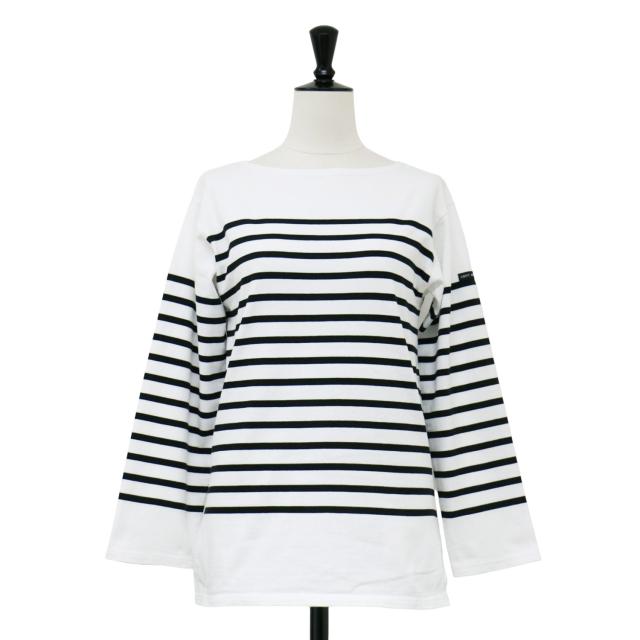 SAINT JAMES セントジェームス Tシャツ ホワイト ブラック 白黒 サイズ:XS / ナヴァル ボーダー 長袖 Tシャツ / NAVAL バスクシャツ ボートネック コットン / トップス カットソー / フランス製【レディース】【中古】【K4480】