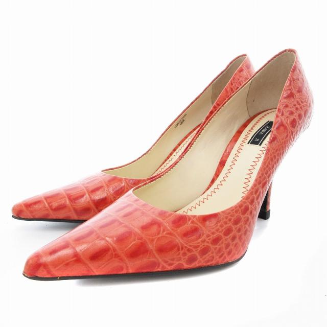 【中古】ザラ ZARA パンプス ポインテッドトゥ ハイヒール クロコ型押し 38 オレンジ /UD レディース