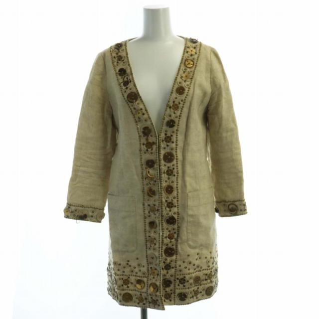 【中古】ダイアグラム グレースコンチネンタル ノーカラーコート ミドル 花装飾 アウター 36 ベージュ 05310661 /RO