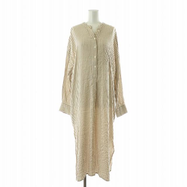【中古】トゥデイフル Stripe Shirts Dress ストライプシャツドレス ワンピース ロング 長袖 36 ベージュ ブラウン