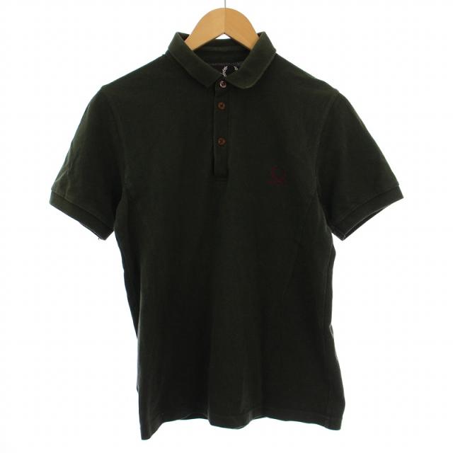 【中古】フレッドペリー FRED PERRY ラフシモンズ RAF SIMON ポロシャツ 半袖 ロゴ刺繍 S カーキ メンズ