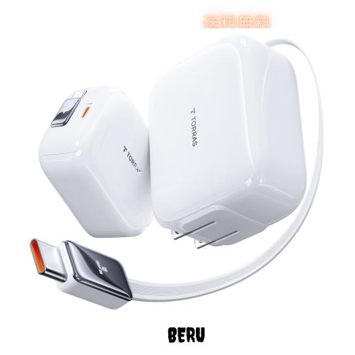◆商品名:【新型最強】TORRAS FlexLine 67W 急速充電器 巻き取り式 type-c 2ポート PD充電器 タイプc ケーブルー体型 GaNIII技術 折畳み式プラグ P