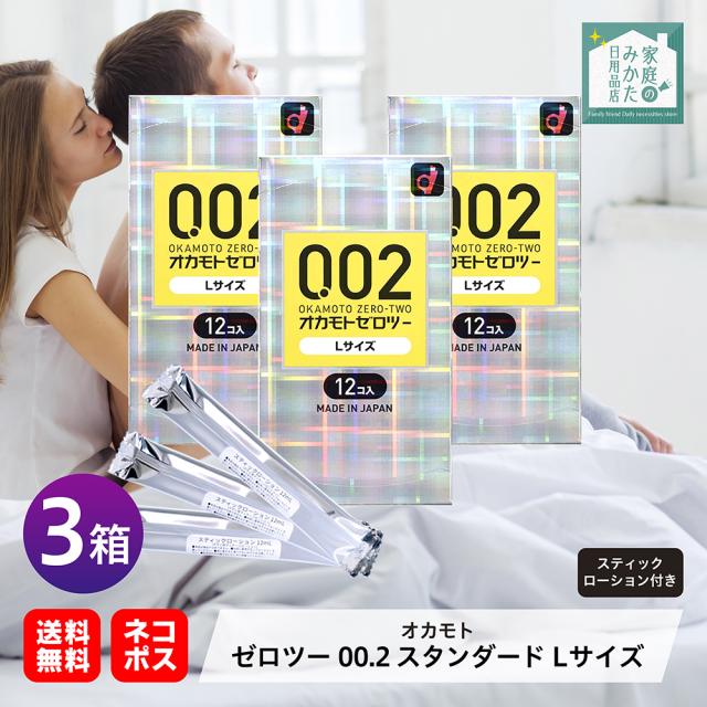 ●コンドーム オカモトゼロツー0.02 Lサイズ 中身がバレない包装コンドーム ポリウレタン PU 12コ入 3個セット スティックローション付