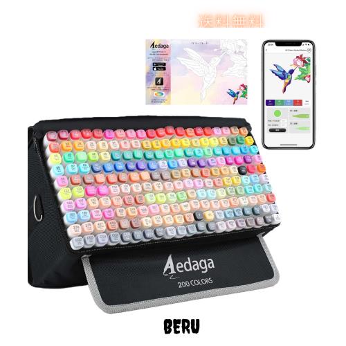 イラストマーカー 200色 マーカーペン セット カラーペン 無料APP付きです 大人 子供 漫画家向けのアルコールマーカー画材 Aedaga シリー