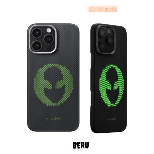 ◆商品名:「PITAKA × Aries」iPhone 16 Pro用 ルミナス ケース MagSafe対応 蓄光 スマホケース アラミド繊維製 超極薄・超軽量 カーボン風 ワイヤ