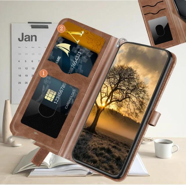 ・高品質なPUレザーを採用した手帳型ケース、キズや汚れに強く、放熱性や耐衝撃が良い。